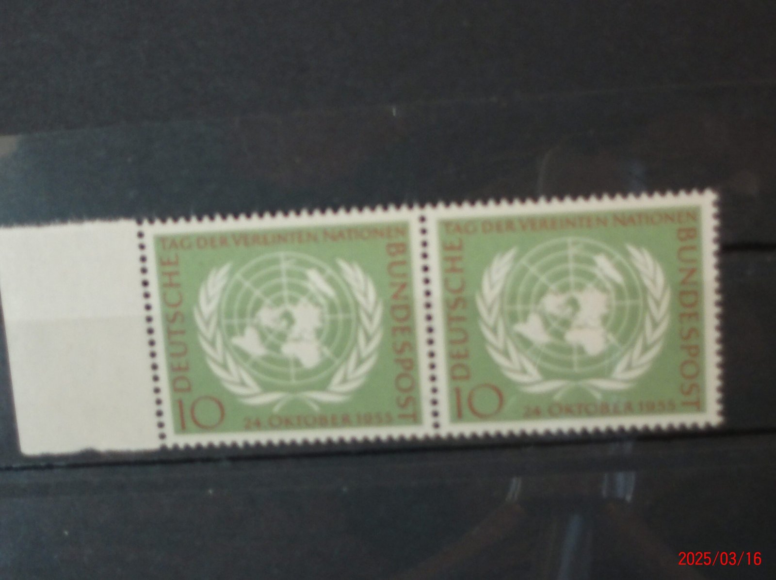 Deutsche Bundespost 24.10.1955 Sondermarke  10 Jahre Vereinte Nationen UNO Nr. 221 **  als waagerechtes Paar mit linkem Rand   Porto und Versand in Deutschland ab 1,10€  EU und Welt auf Anfrage
