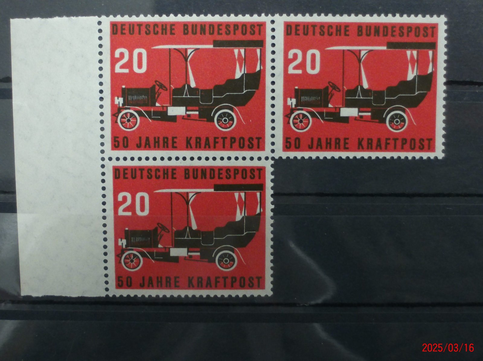 Deutsche Bundespost 1. Juni 1955   50 Jahre Kraftpost ** 3 Marken mit linkem Bogenrandstück   Porto und Versand Deutschland 3,30€  EU und Ausland auf Anfrage