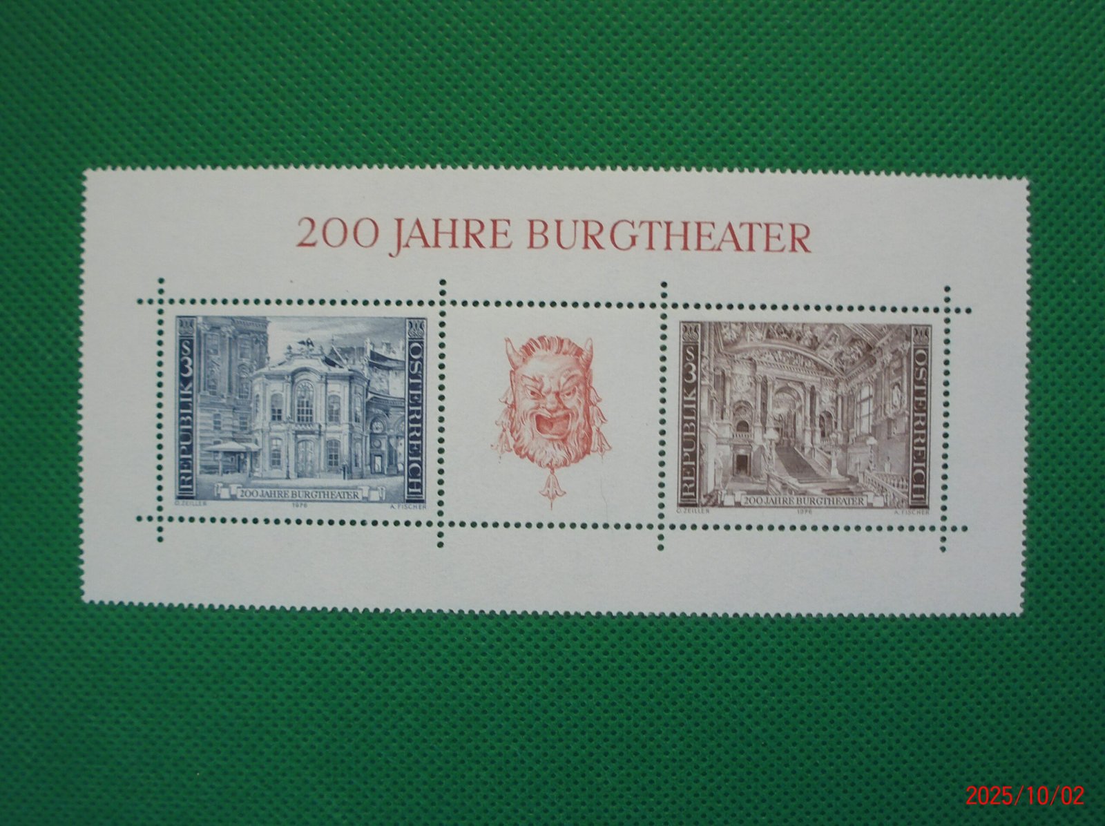 Blockausgabe Nr. 3 200 Jahre Burgtheater 1976 (08. April) postfrische Erhaltung